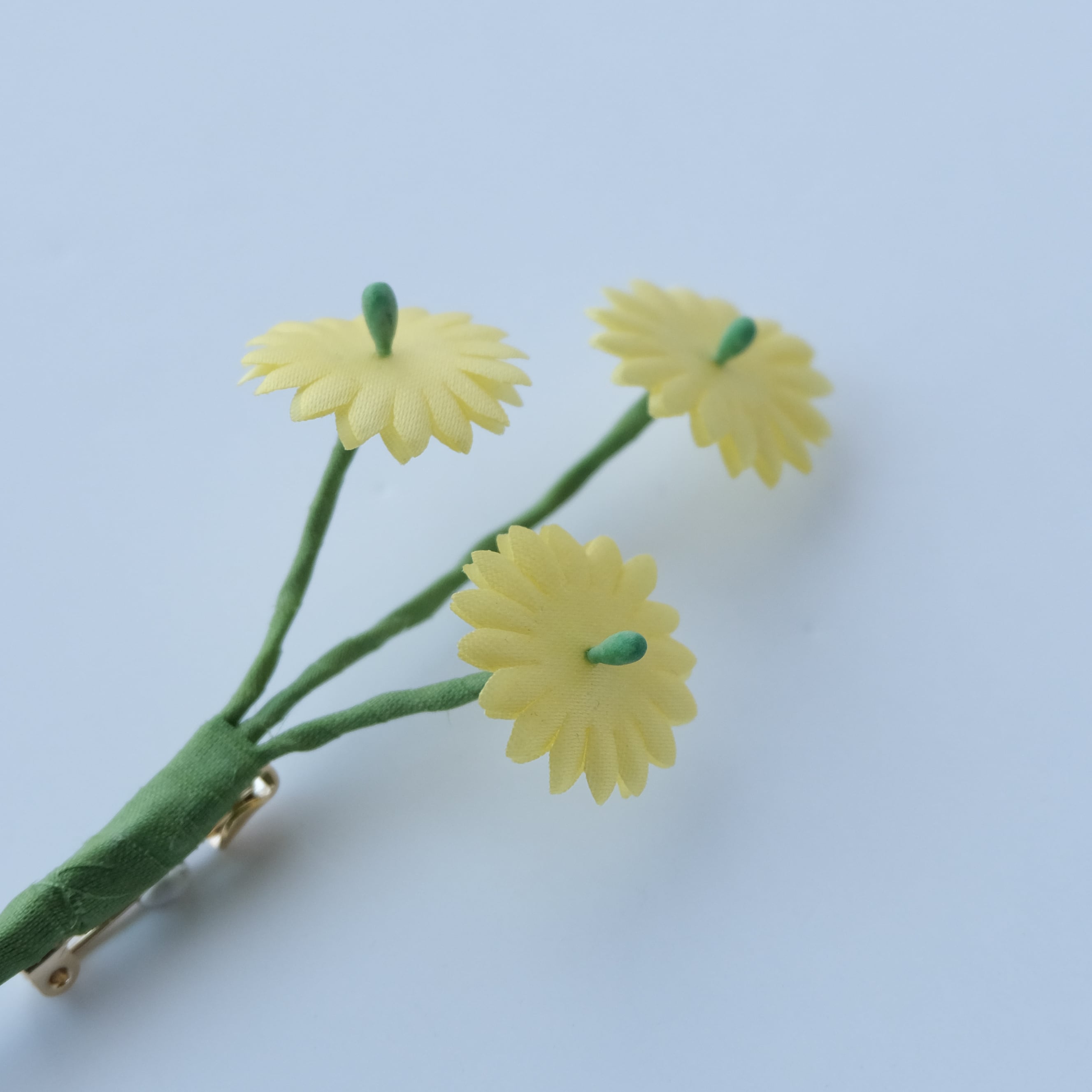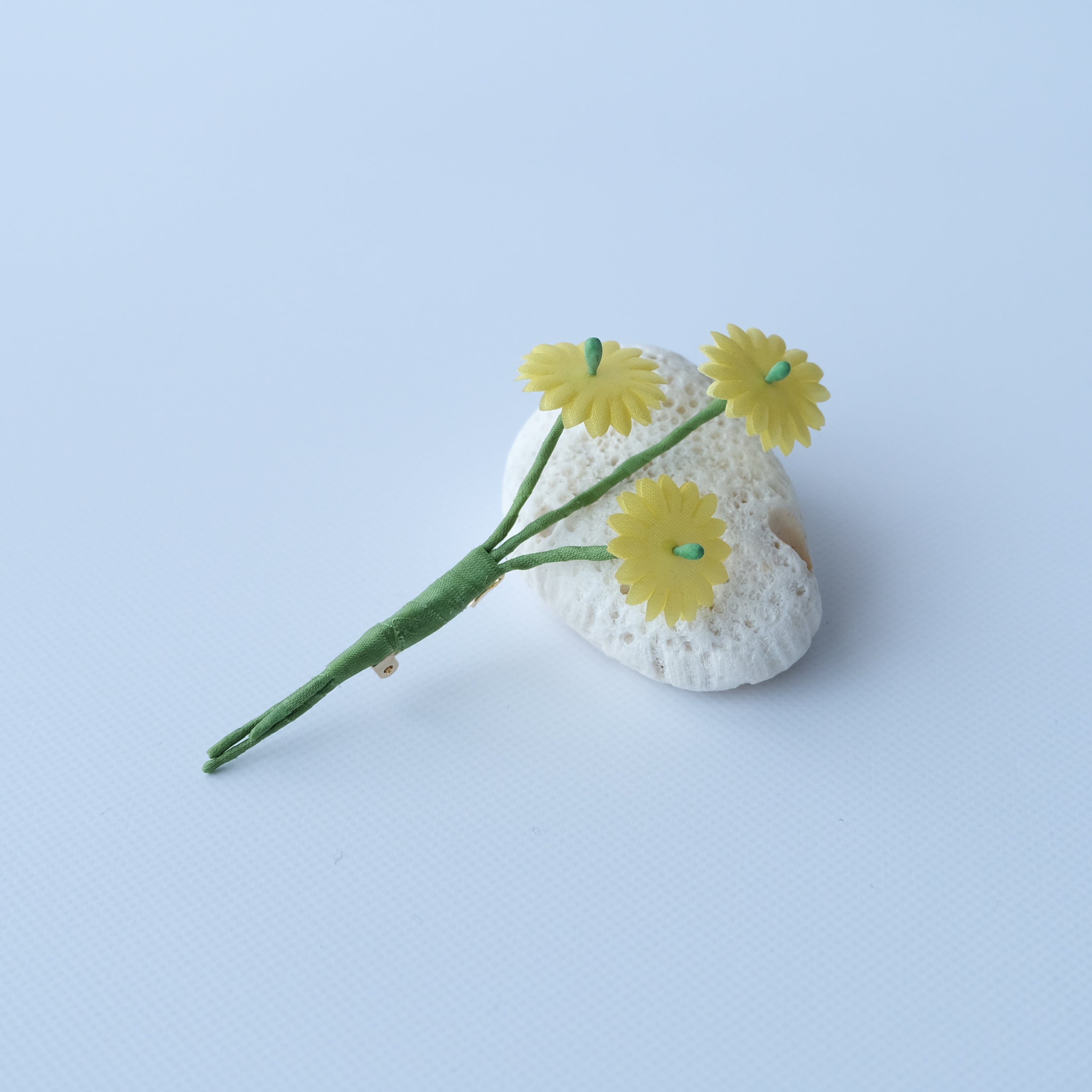 爽やかで柔らかいレモンイエローのお花をブローチに。