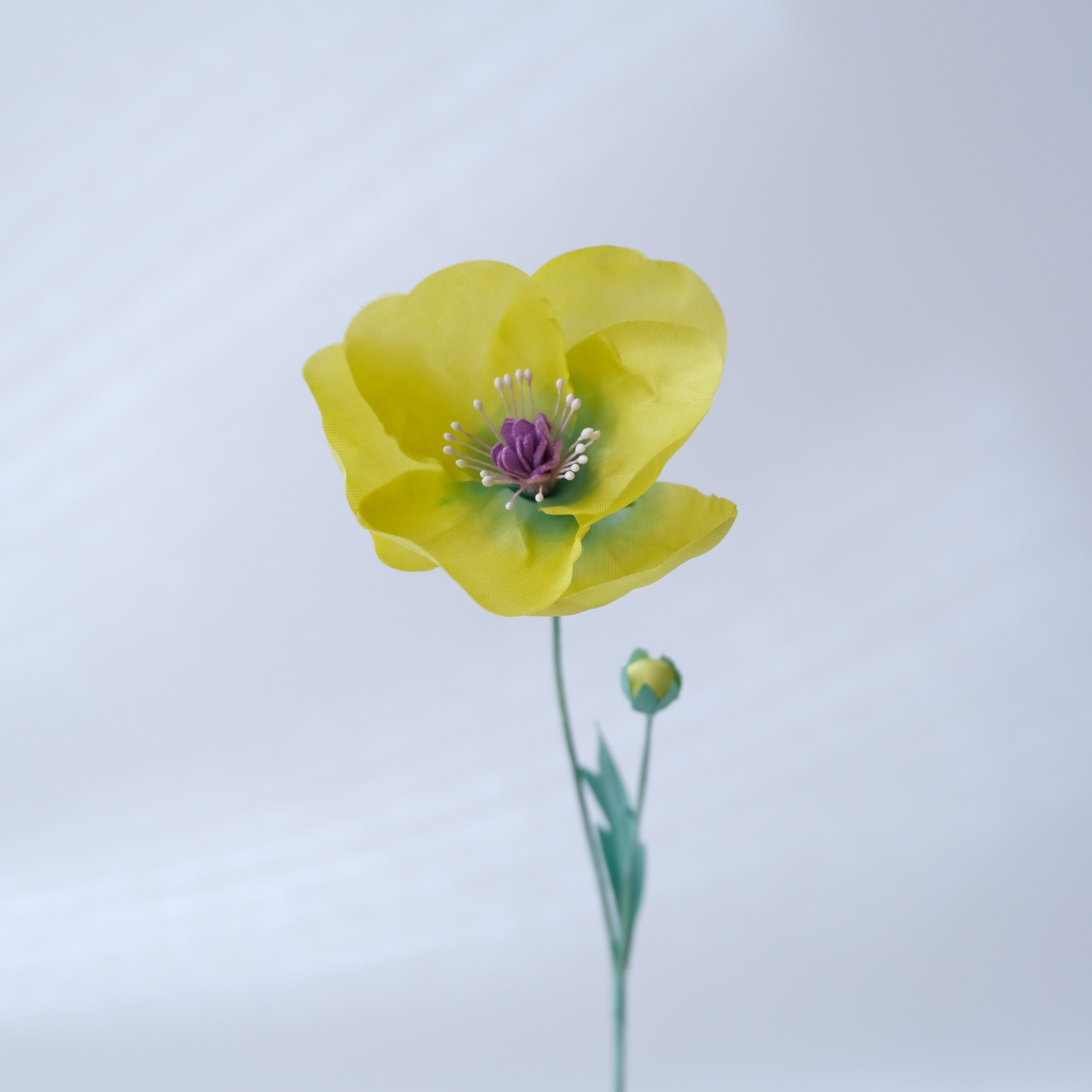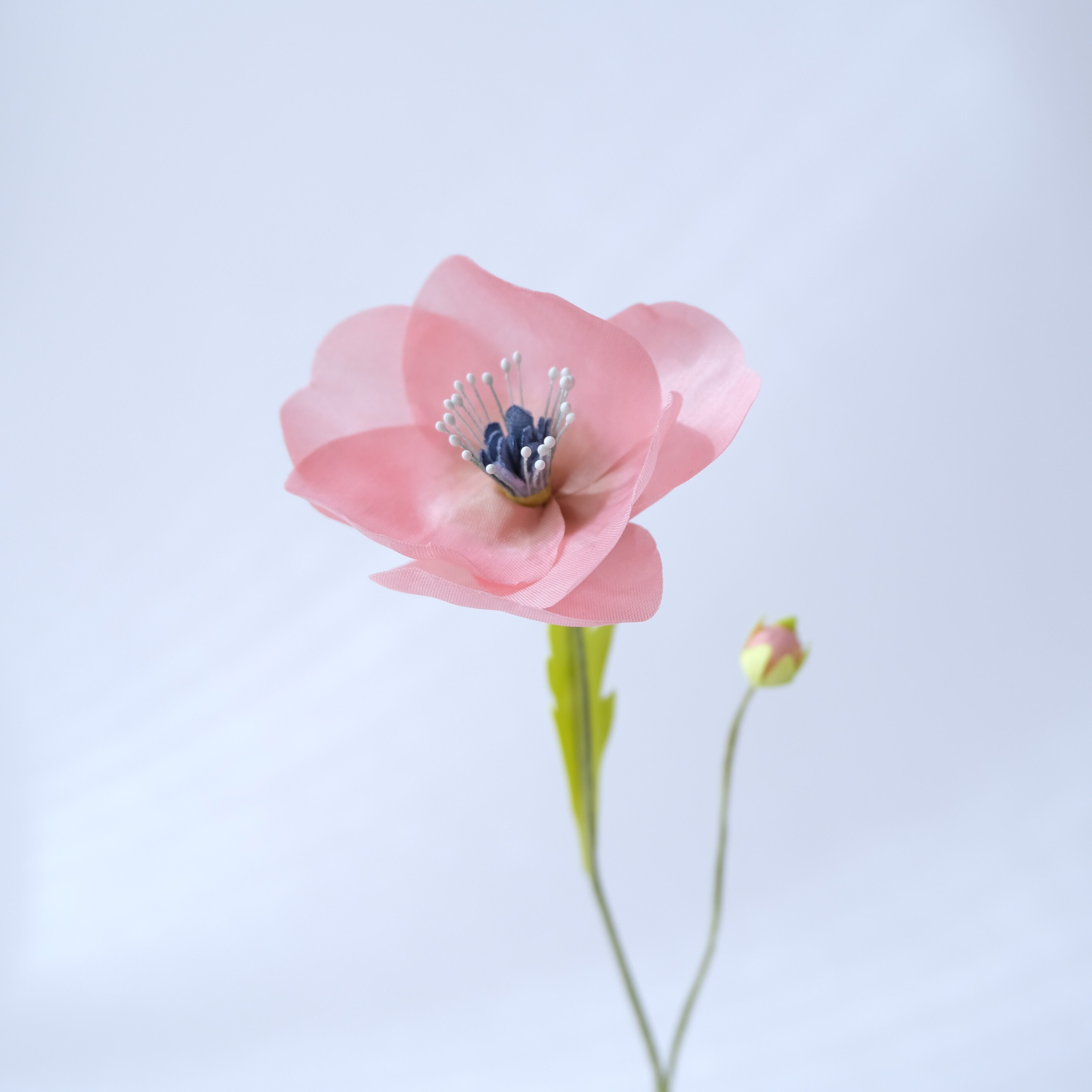 透明感を持たせたくて花弁には薄い絹の生地を選びました